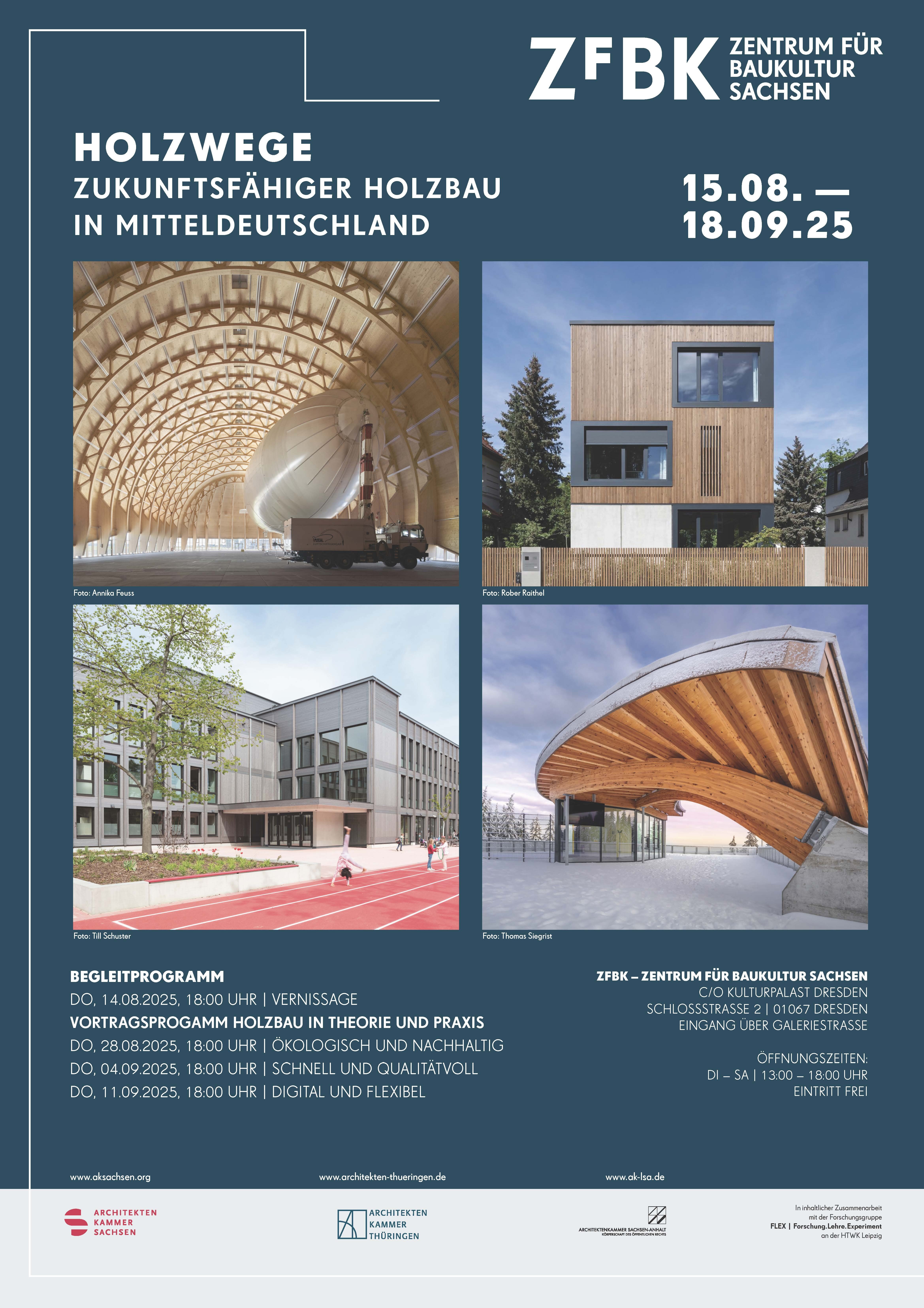 from 07. August 2025 Ausstellung: HOLZWEGE – Zukunftsfähiger Holzbau in Mitteldeutschland Wie bauen wir in Zukunft? – In Dresden wird gezeigt, was möglich ist! more information